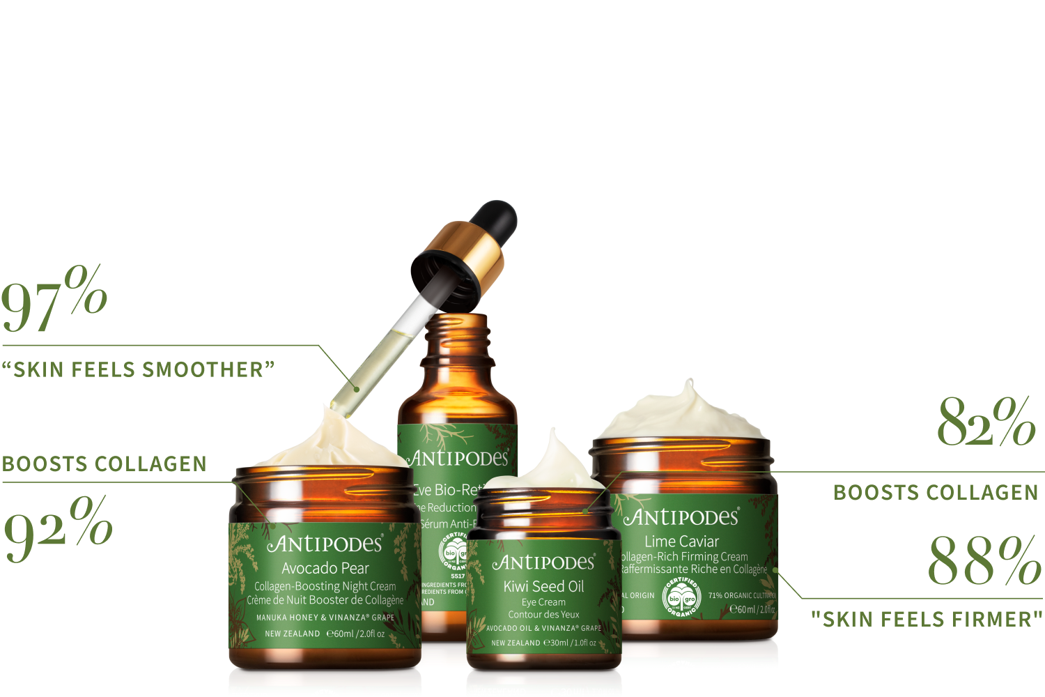 在 Antipodes,我們採用科學方法進行天然護膚。我們的抗衰老產品經過體外測試—實驗室研究證明,我們的配方能夠幫助肌膚更健康、更年輕。